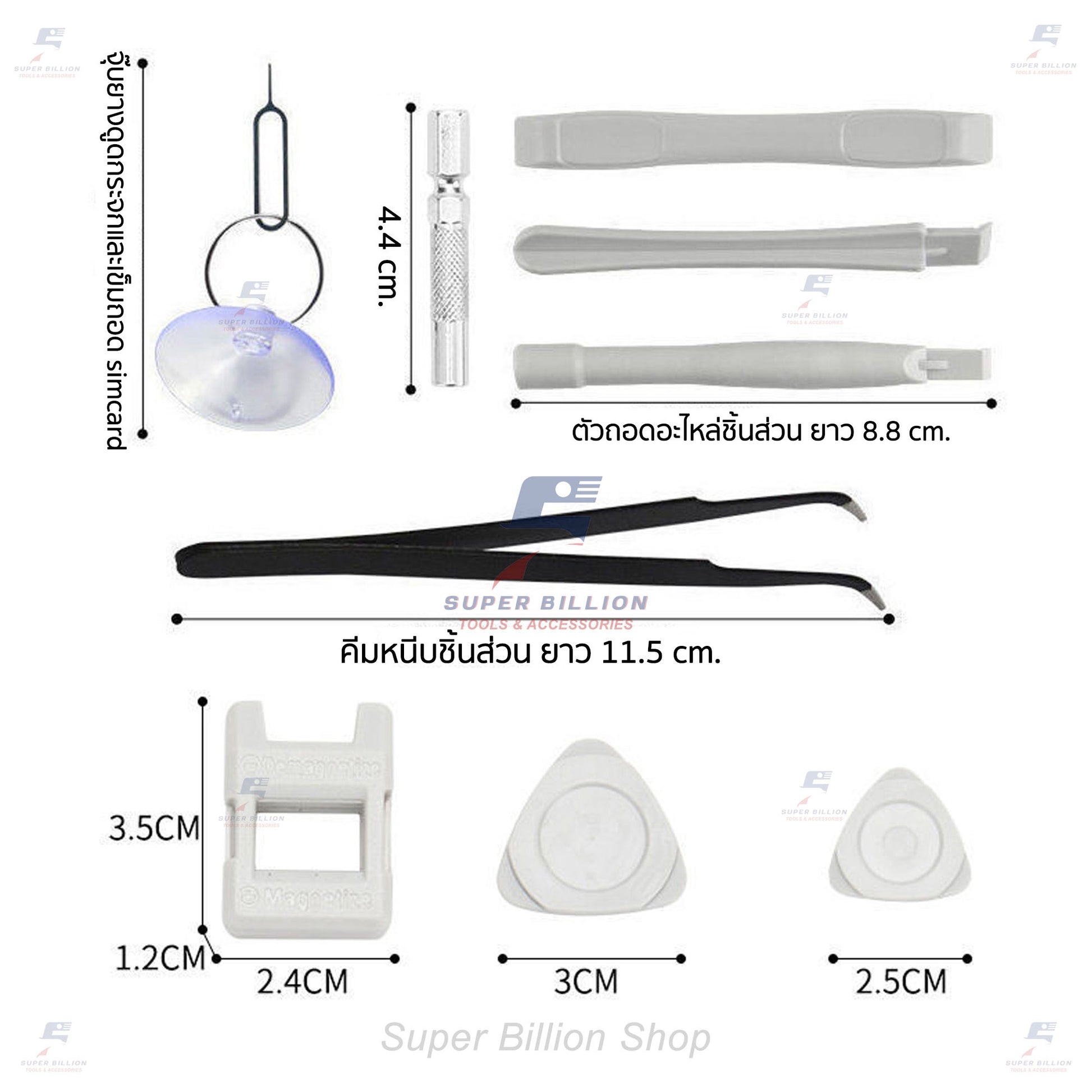 ✅ มาพร้อมอุปกรณ์เสริมครบชุด เช่น คีมหนีบ ชะแลง ตัวดูดซิมการ์ด ตัวถอดอะไหล่ ฯลฯ