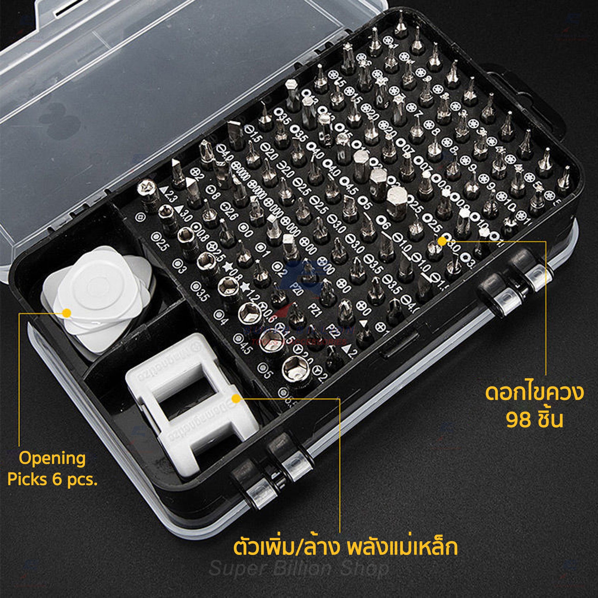 ✅ หัวไขควง 98 ชิ้น หลากหลายขนาดและรูปแบบ