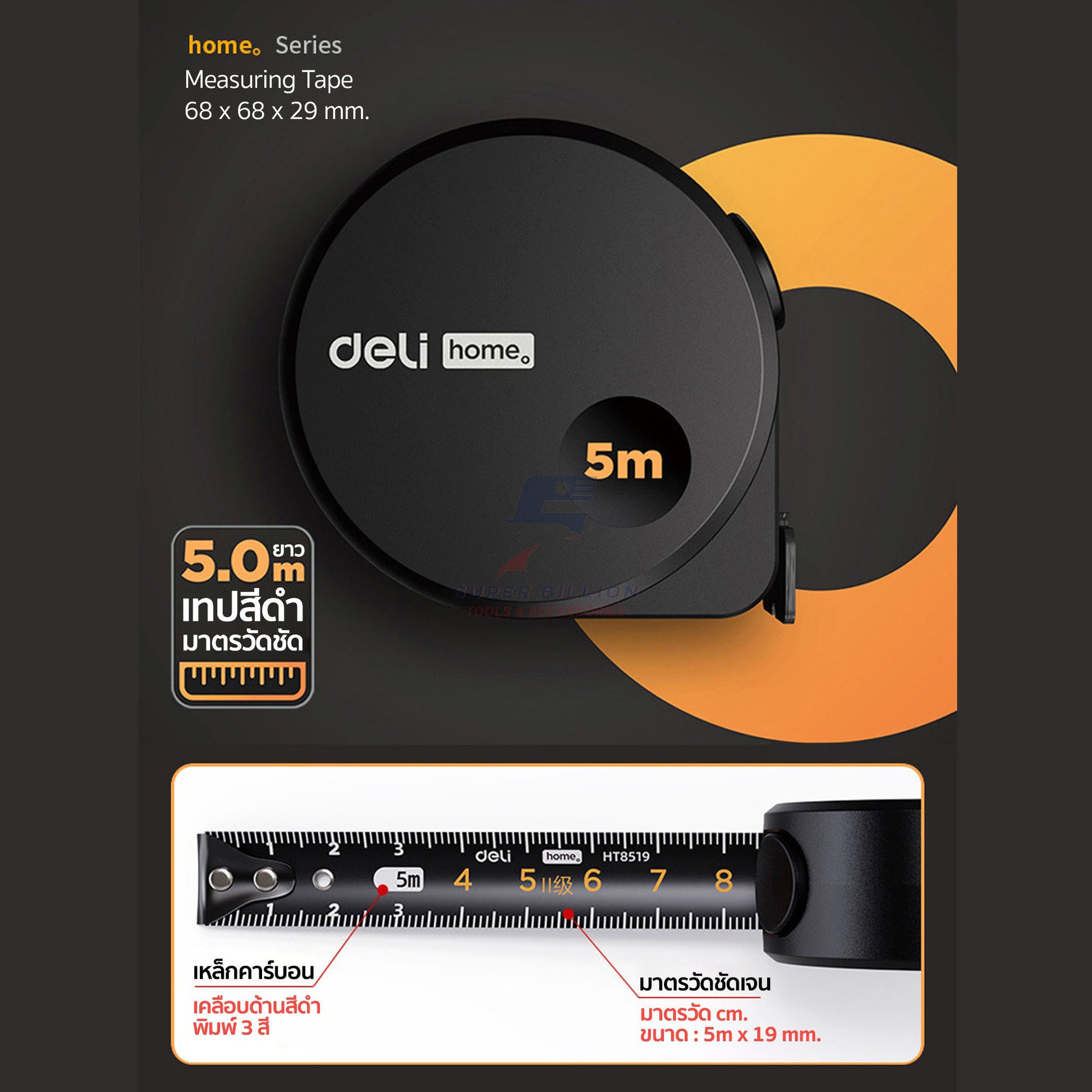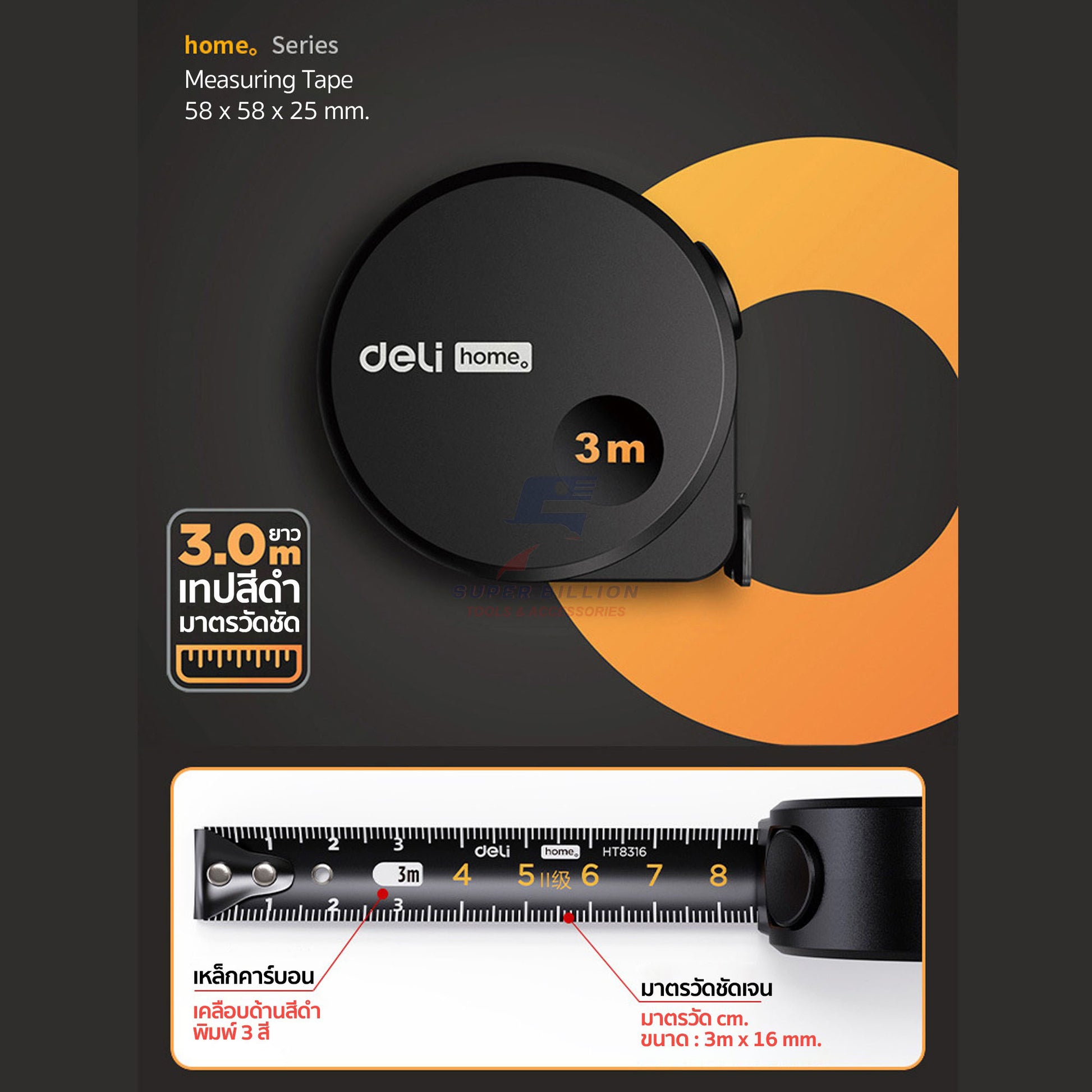 ตลับเมตร Deli Home ดีไซน์มินิมอล ขนาดกะทัดรัด พกพาง่าย ใช้งานสะดวก