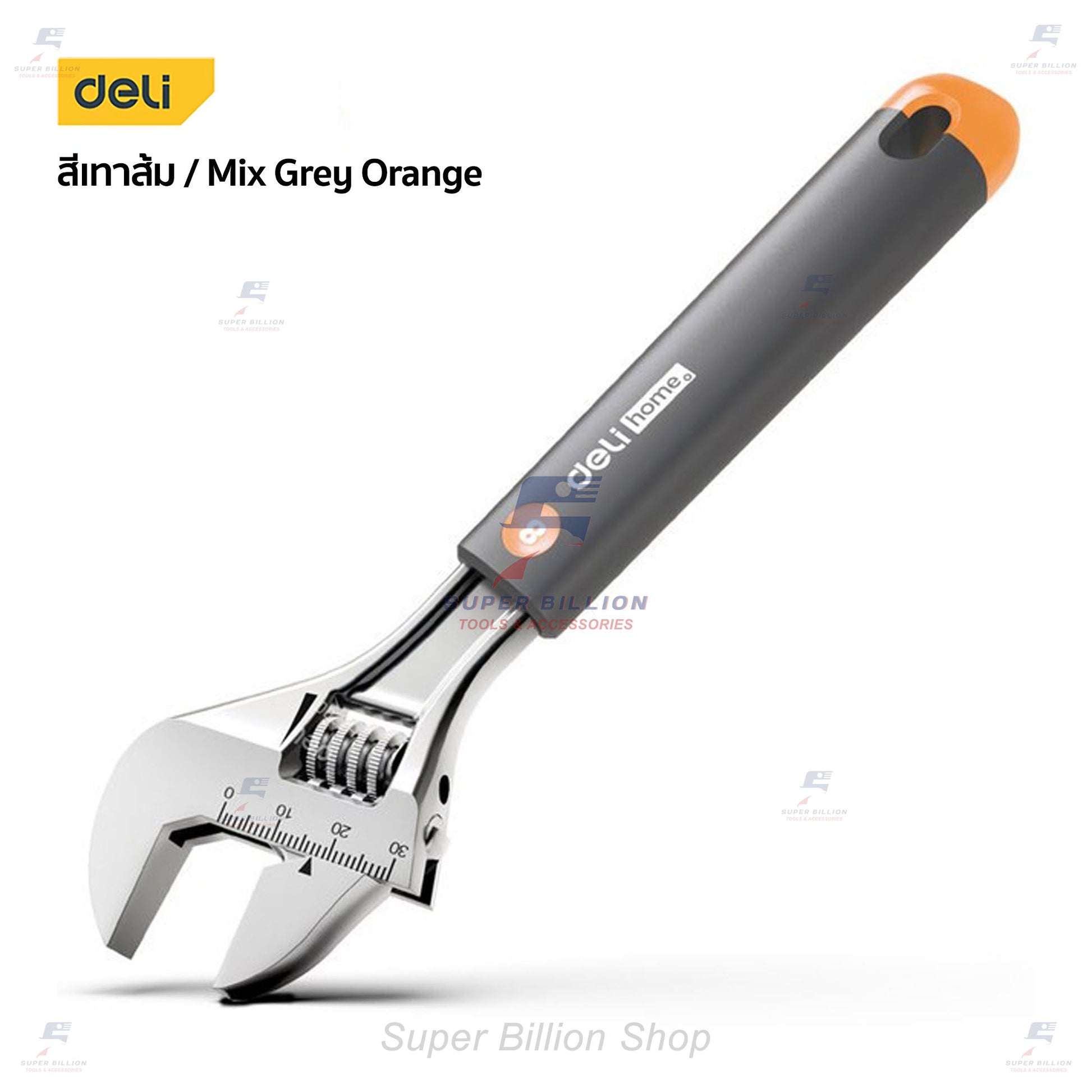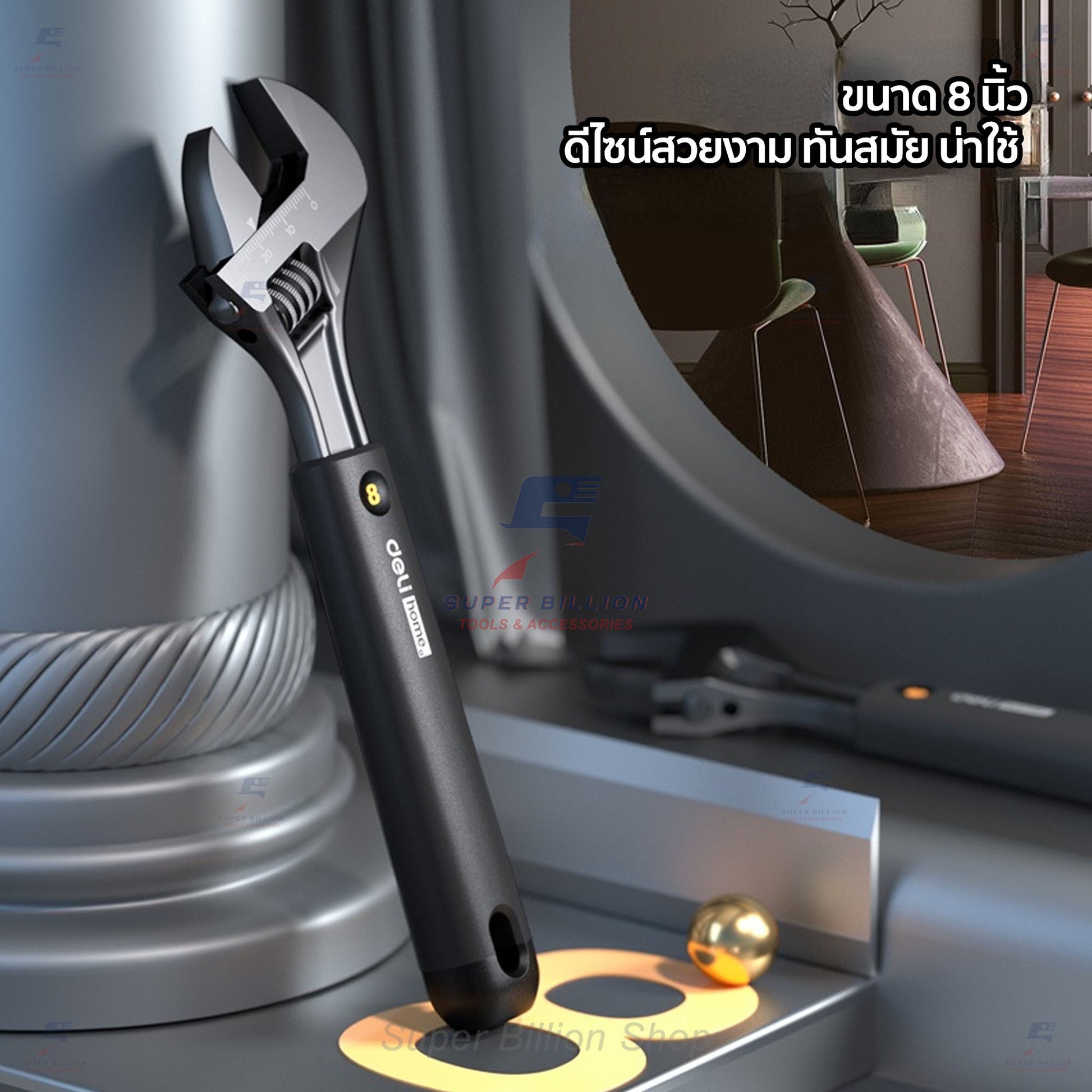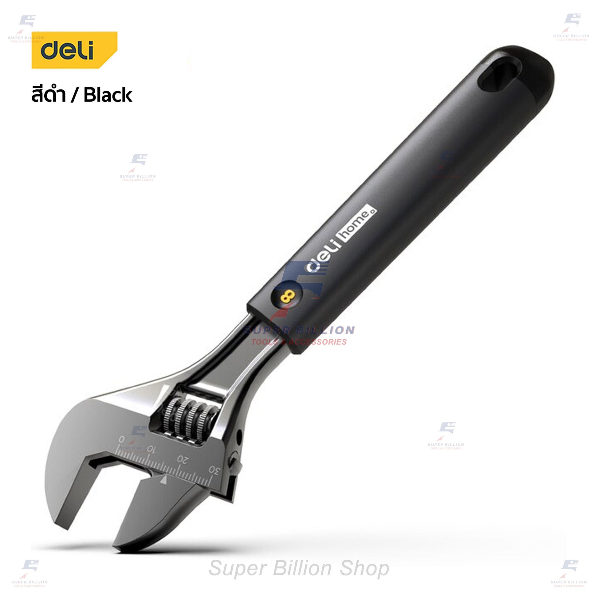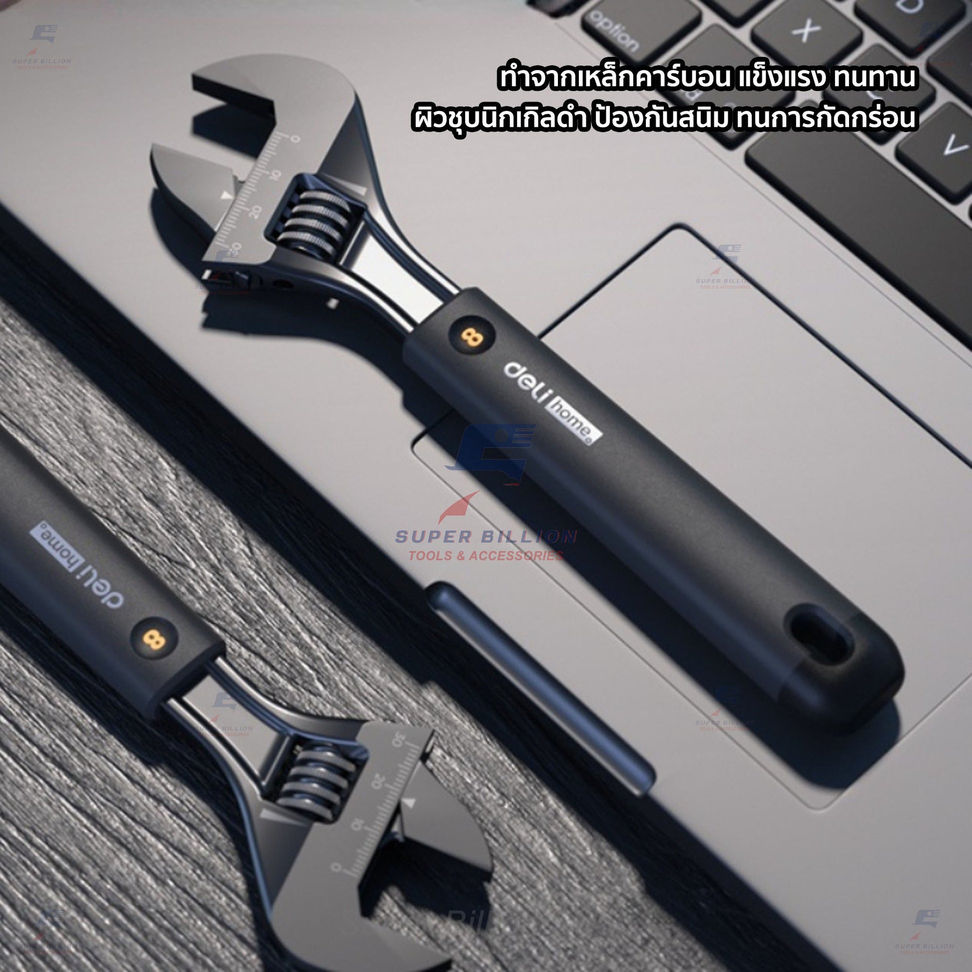 ประแจเลื่อน Deli ขนาด 8 นิ้ว เหล็กคาร์บอน ไม่เป็นสนิม แข็งแรง ด้ามหุ้มยาง HT1508
