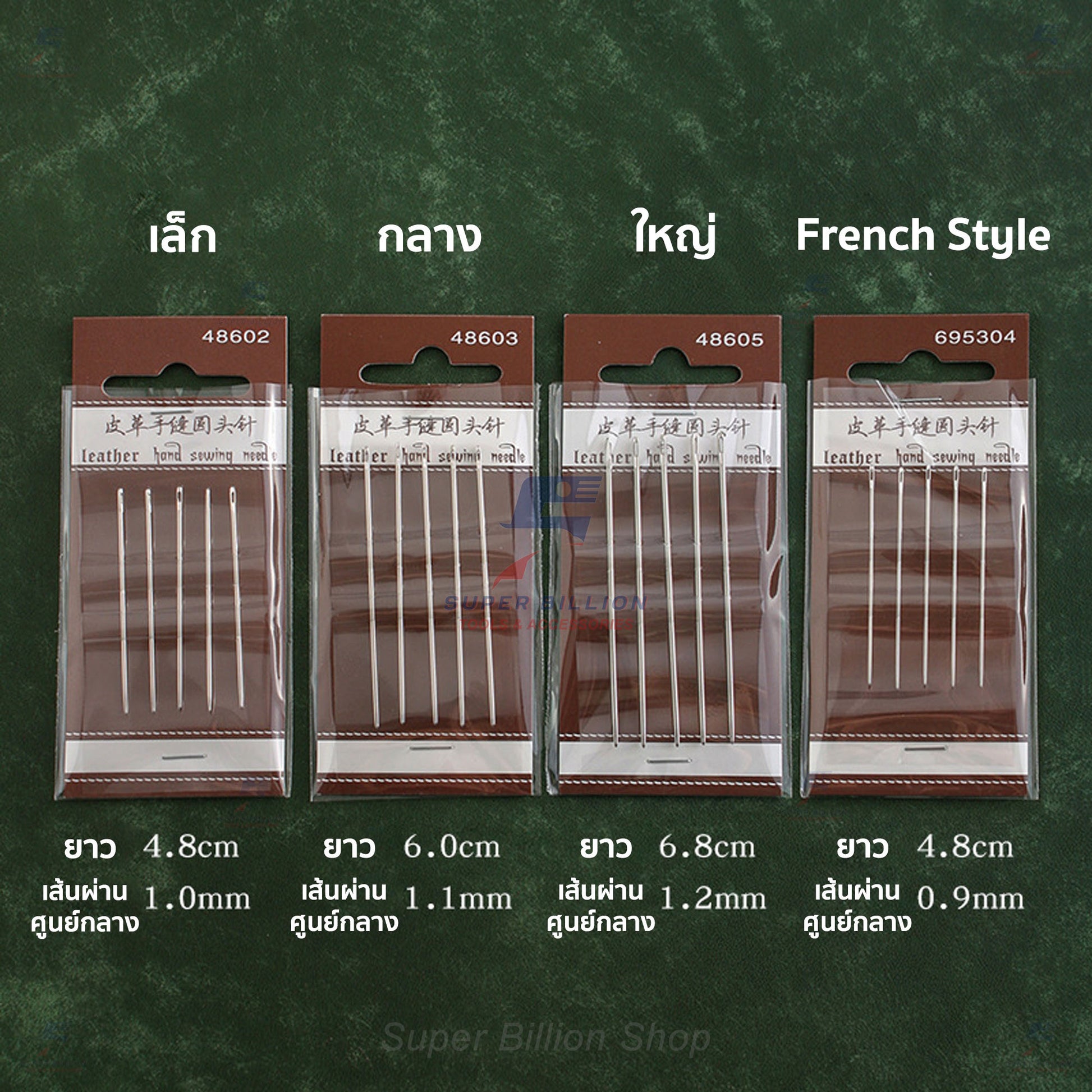 1. ขนาดเล็ก ความยาว 4.8 cm. เส้นผ่านศูนย์กลาง 1.0 mm. (สำหรับใช้งานทั่วไป เย็บหนังได้ งานชิ้นเล็กๆ งานค่อนข้างละเอียด)