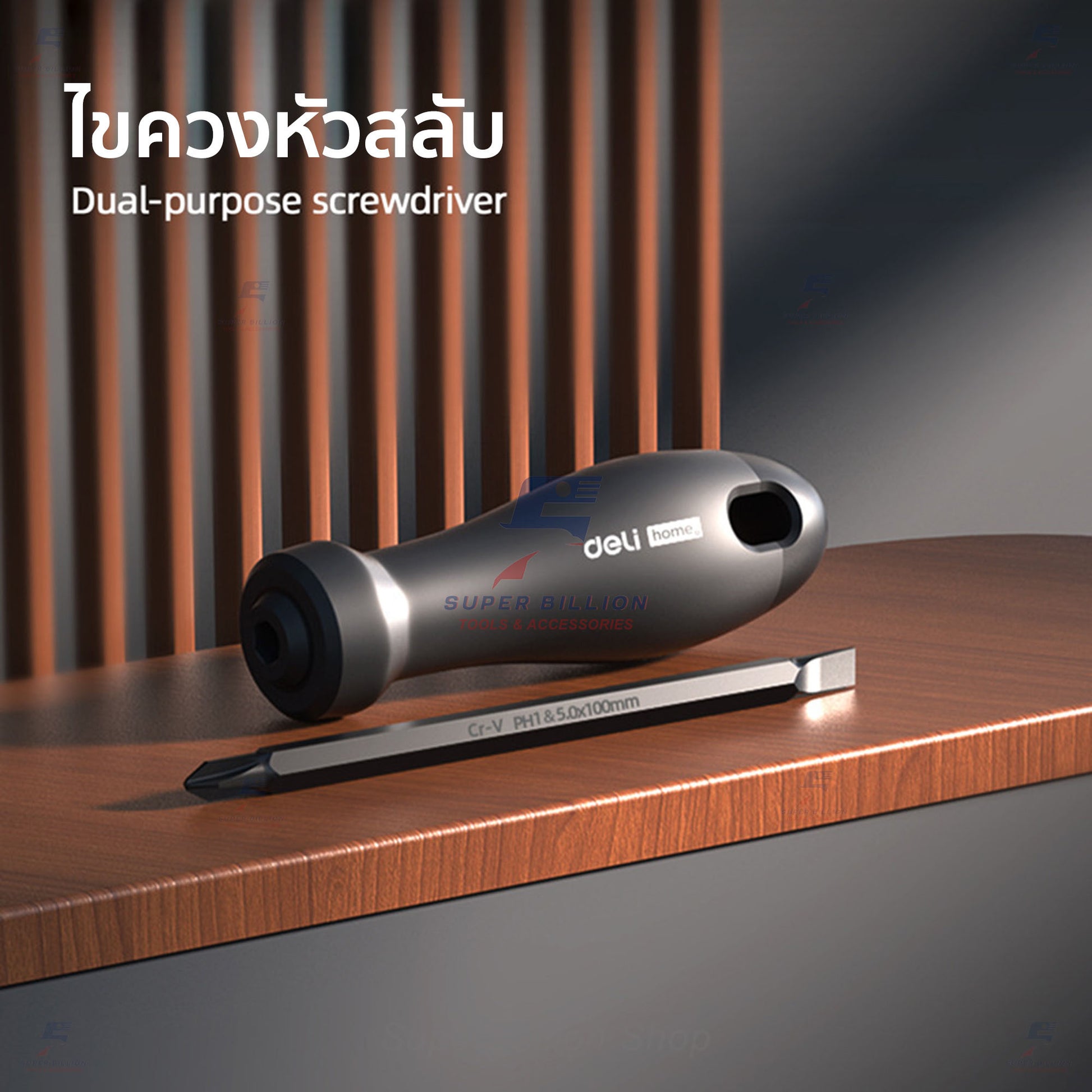 ไขควงสลับ หัวไขควงแฉกและไขควงปากแบน ยี่ห้อ Deli